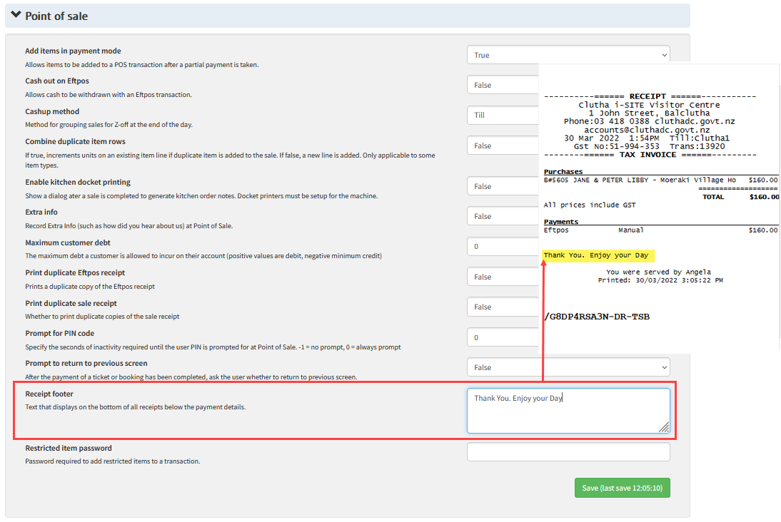 - Customise receipt footer message